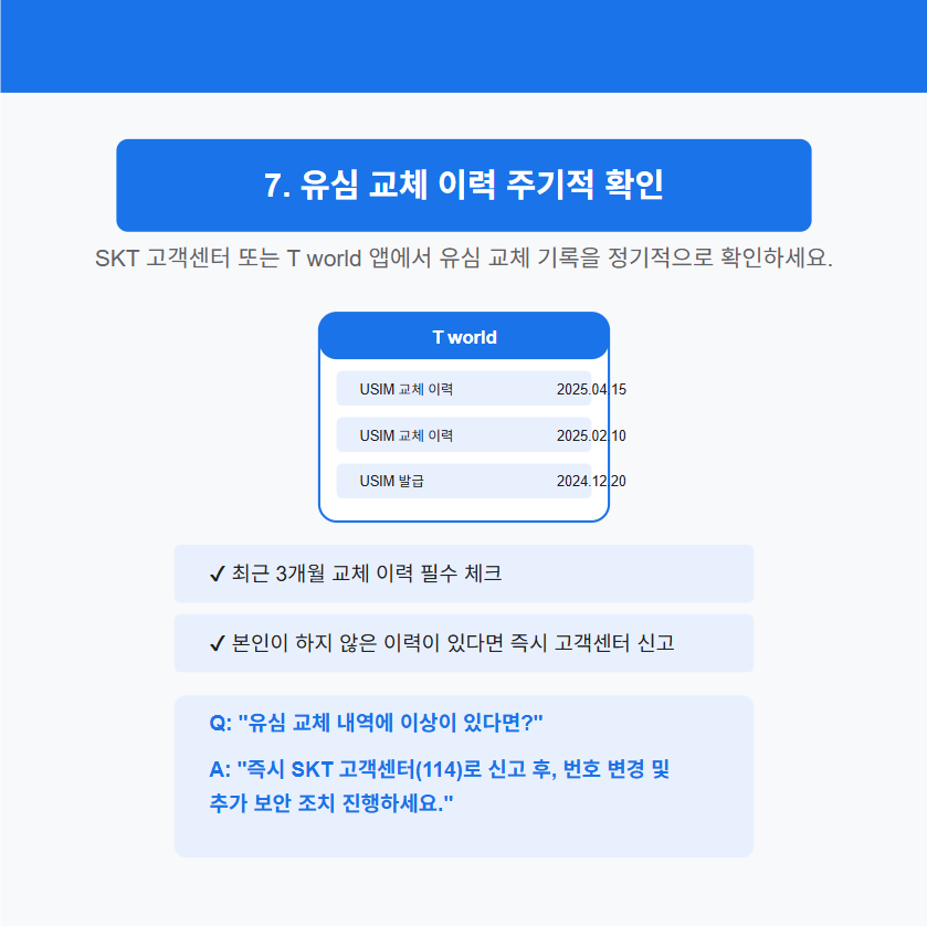 SKT 고객센터 또는 T world 앱에서 유심 교체 기록을 정기적으로 확인하세요.