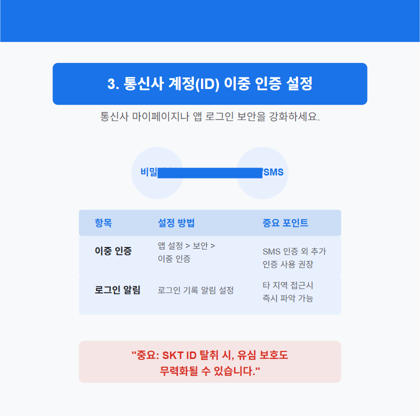 "중요: SKT ID 탈취 시, 유심 보호도 무력화될 수 있습니다."