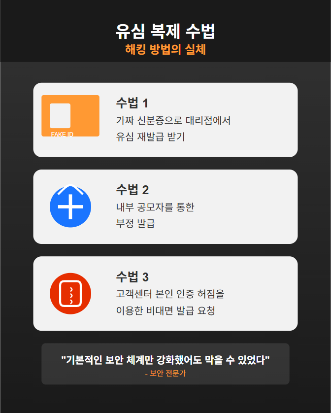 1. 첫째, 가짜 신분증을 이용해 대리점에서 유심을 재발급받는 방식