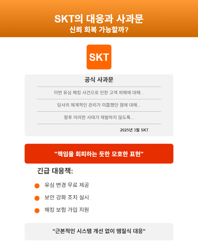 SK텔레콤은 사건 발생 후 공식 사과문을 발표했지만,
