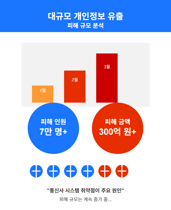 "기존 해킹 사건과 달리 통신사의 시스템 취약점이 주요 원인"이라는 지적이 나오면서, 피해 규모는 시간이 지날수록 더 커질 것으로 예상되고 있습니다.